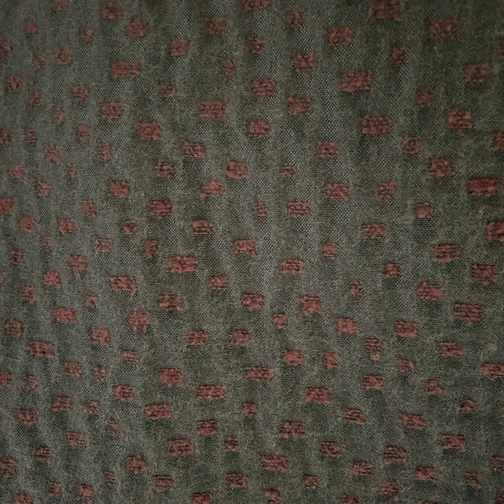 片側をウールの平織り「モスリン」でさらっと、片側をウールの綾織「フランネル」でふわふわと、感触の違いを対比させた織物です。降り積もった雪がザラザラとした氷の粒になる様をヒントに、手描きによるデザインです。